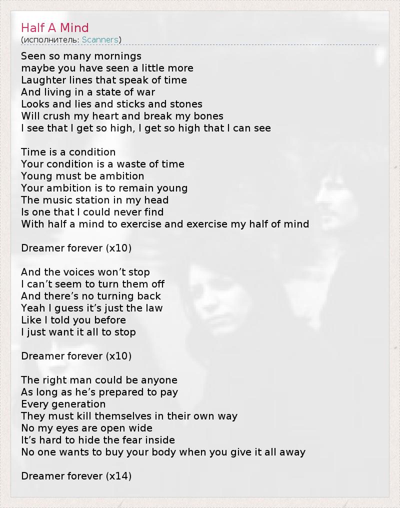 А как ты думаешь, о чем песня "Half A Mind" ?