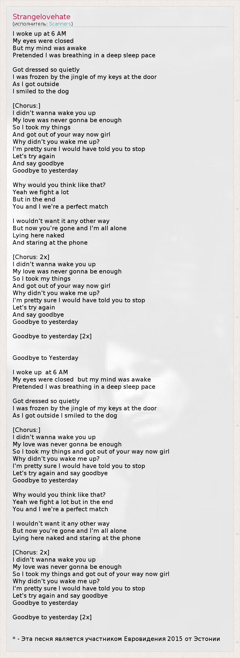 А как ты думаешь, о чем песня "Strangelovehate" ?