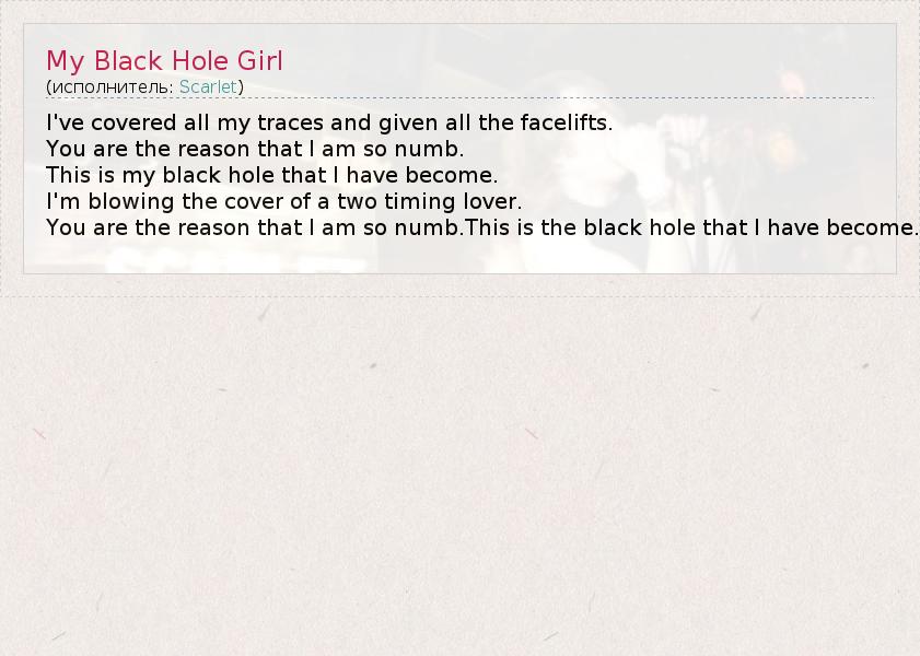 А как ты думаешь, о чем песня "My Black Hole Girl" ?