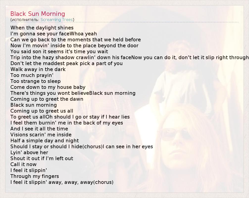 А как ты думаешь, о чем песня "Black Sun Morning" ?