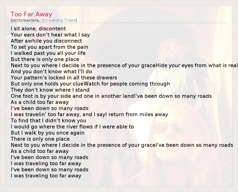 А как ты думаешь, о чем песня "Too Far Away" ?