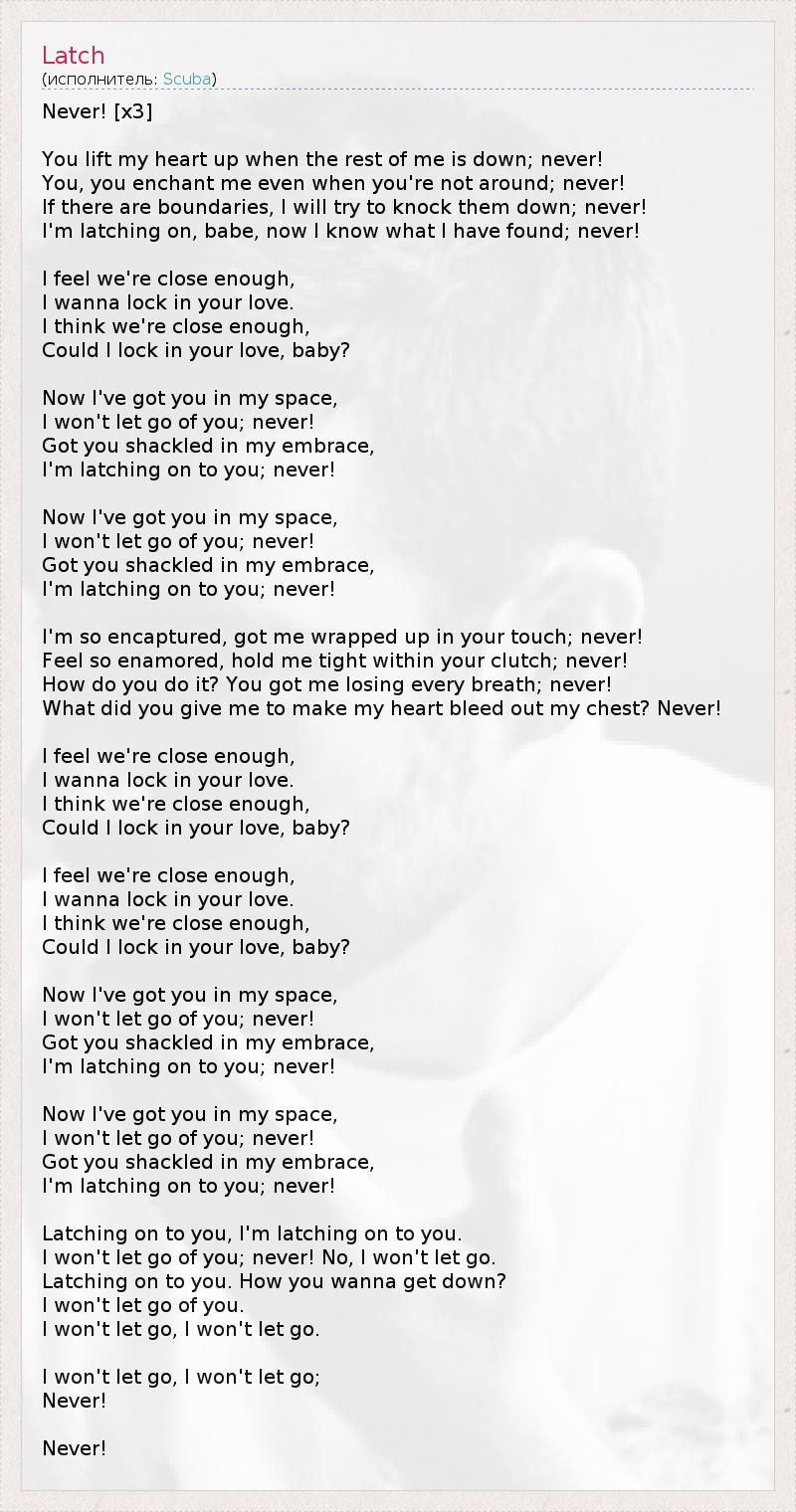 Я привязываюсь, малыш, я понимаю, что нашёл; никогда!