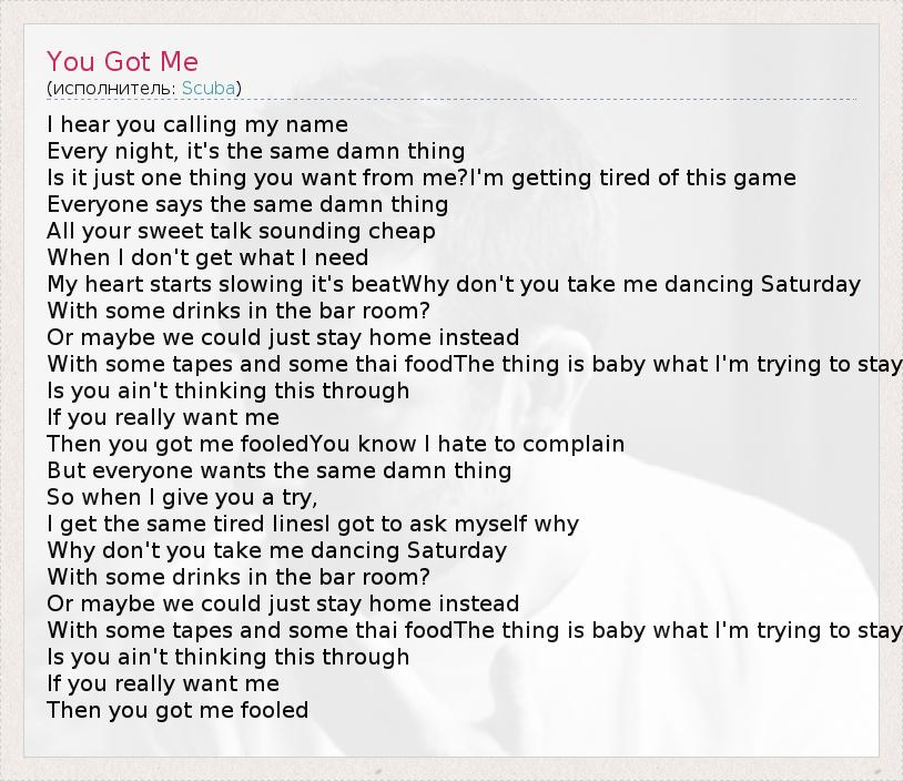 А как ты думаешь, о чем песня "You Got Me" ?