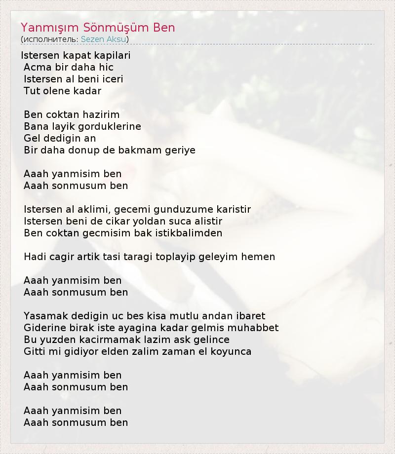 ГлавнаяИсполнителиSezen AksuYanmışım Sönmüşüm Ben