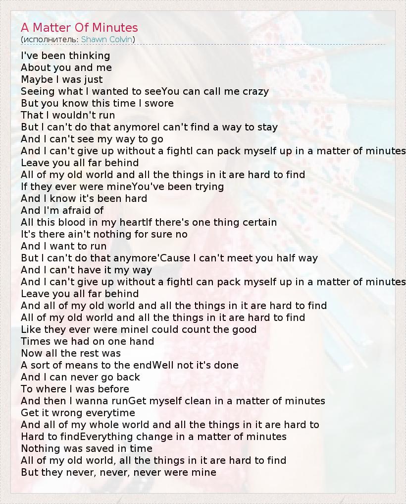 А как ты думаешь, о чем песня "A Matter Of Minutes" ?