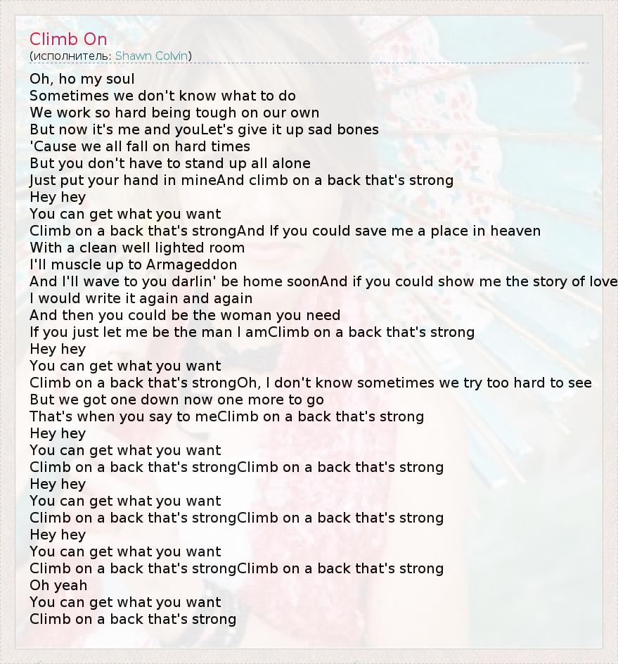 Climb on a back that's strongOh, I don't know sometimes we try too hard to see