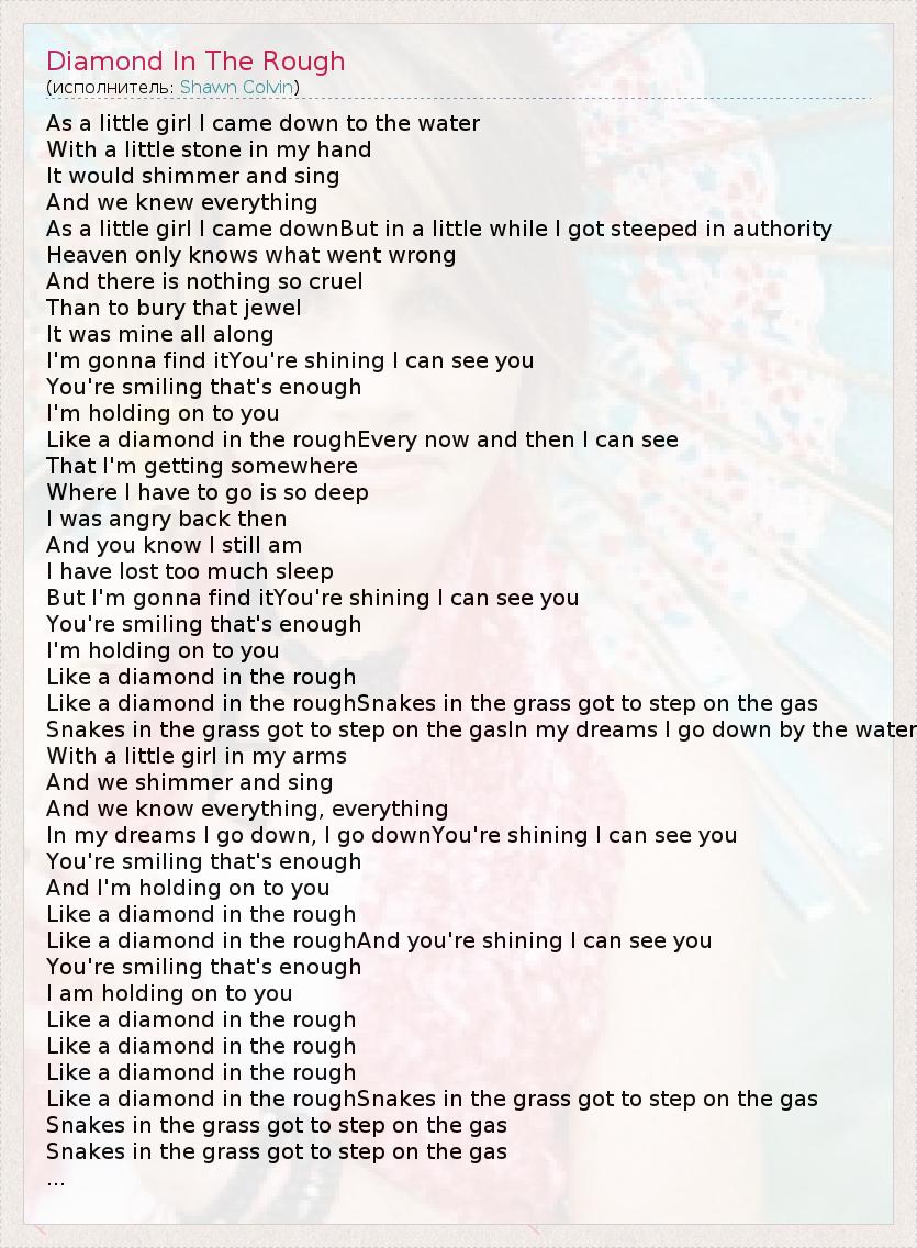 А как ты думаешь, о чем песня "Diamond In The Rough" ?
