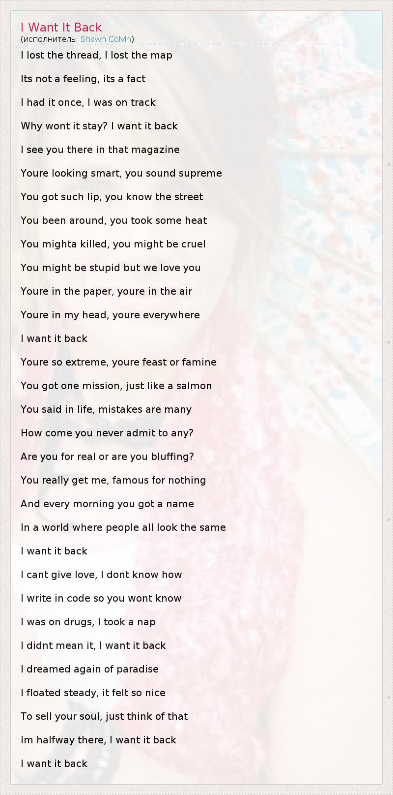 А как ты думаешь, о чем песня "I Want It Back" ?