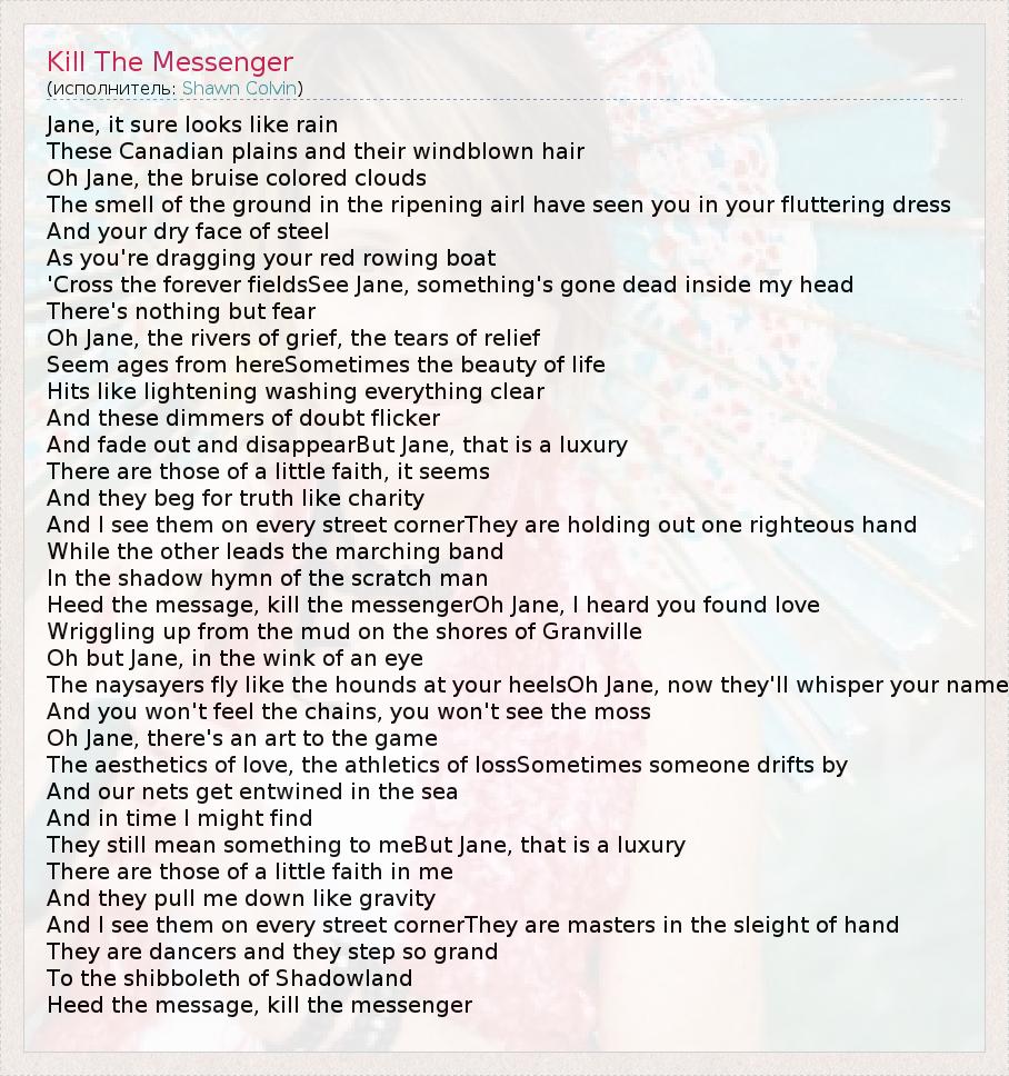 Heed the message, kill the messengerOh Jane, I heard you found love