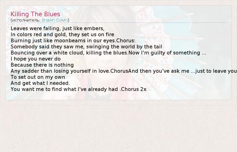 А как ты думаешь, о чем песня "Killing The Blues" ?