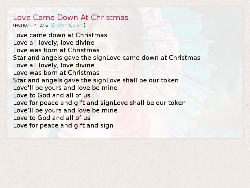 А как ты думаешь, о чем песня "Love Came Down At Christmas" ?