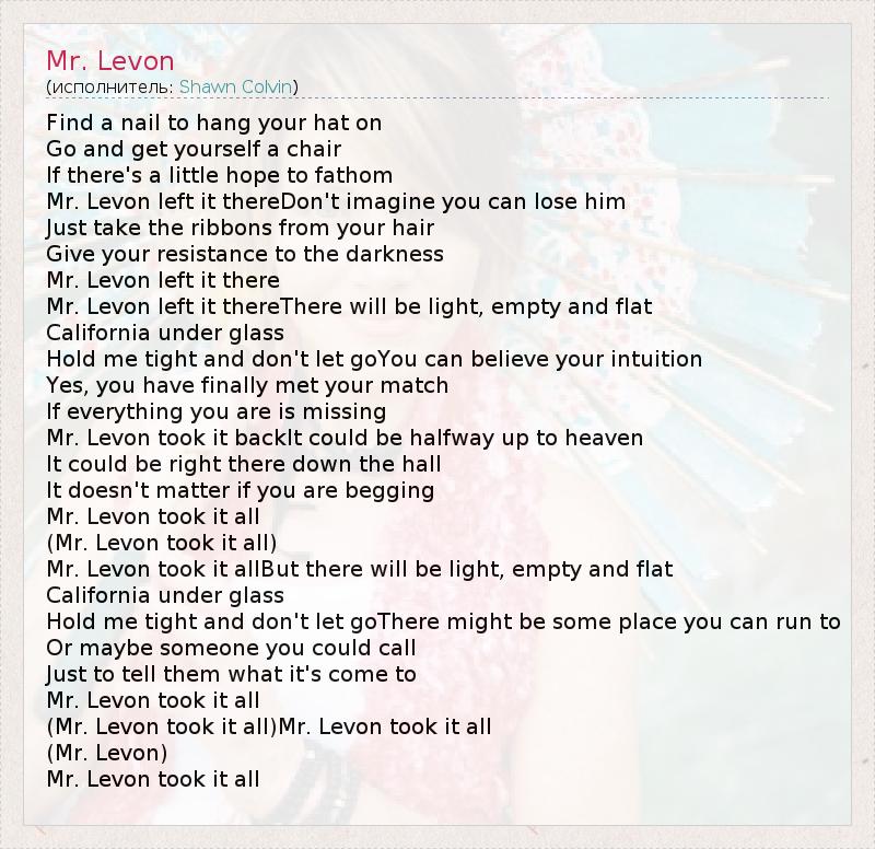 А как ты думаешь, о чем песня "Mr. Levon" ?