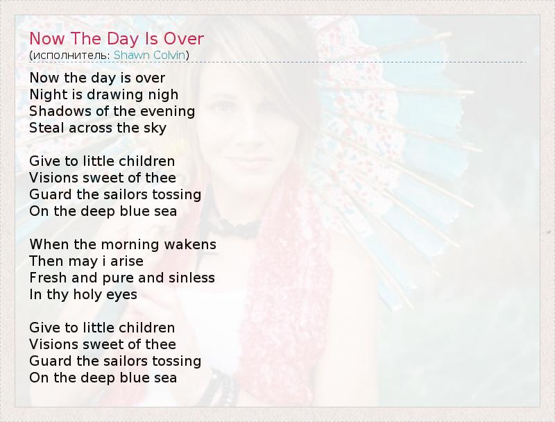 А как ты думаешь, о чем песня "Now The Day Is Over" ?