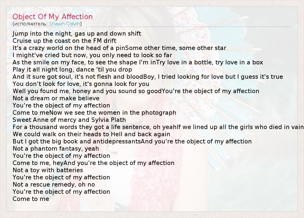 А как ты думаешь, о чем песня "Object Of My Affection" ?