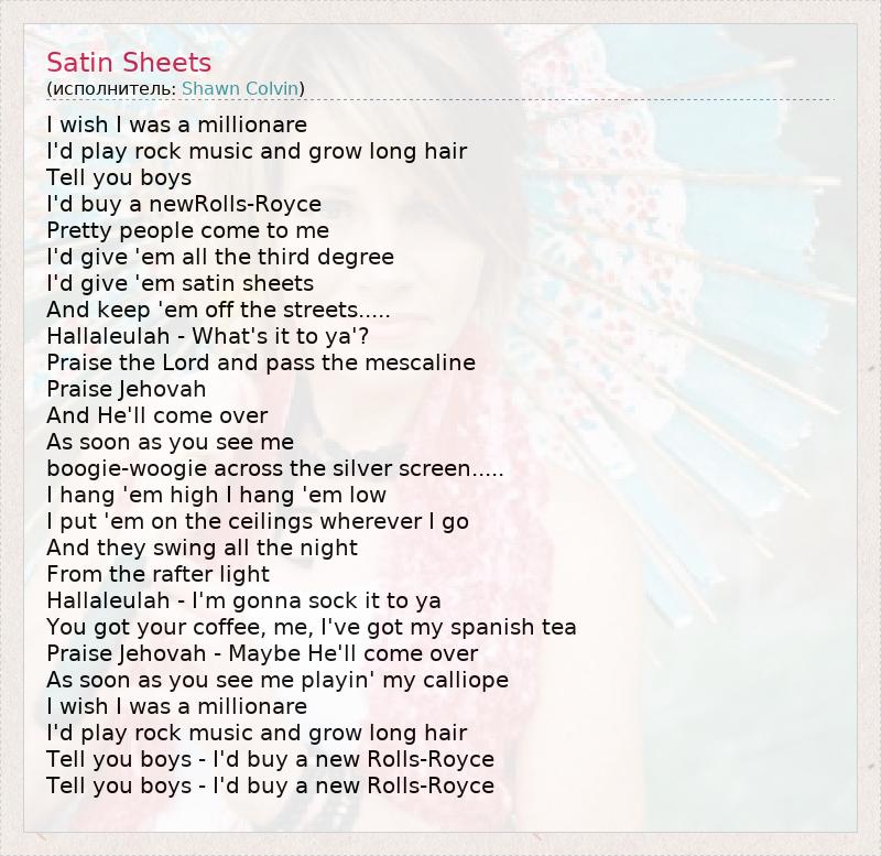 А как ты думаешь, о чем песня "Satin Sheets" ?