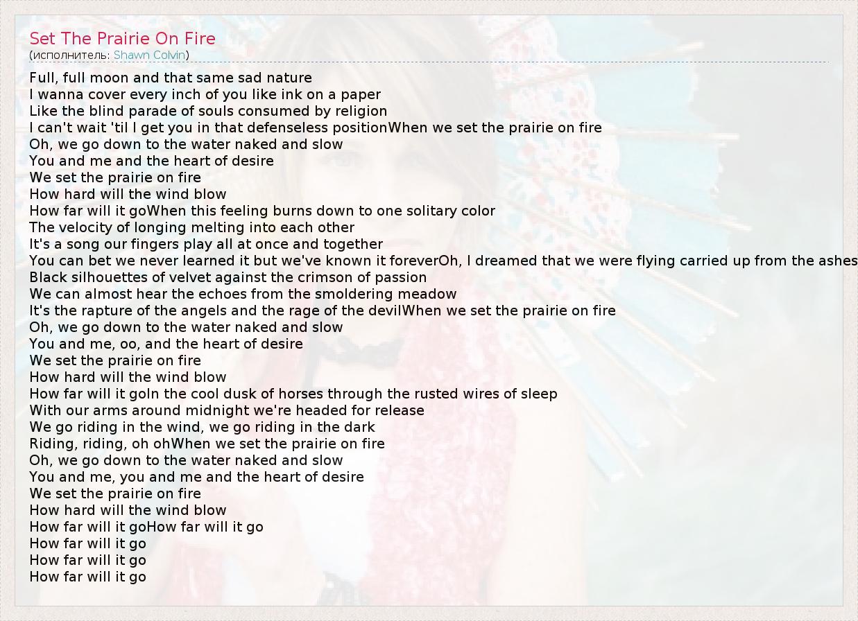 А как ты думаешь, о чем песня "Set The Prairie On Fire" ?