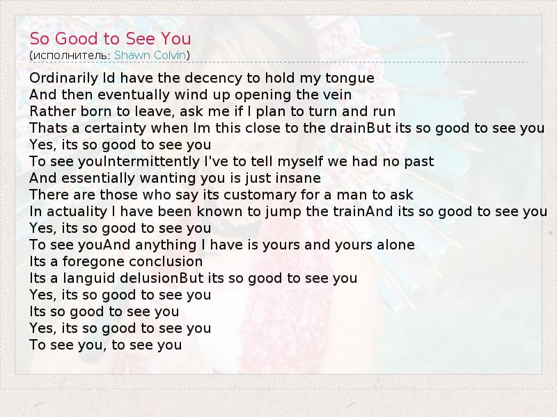 А как ты думаешь, о чем песня "So Good to See You" ?