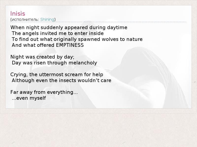 Это интересно:Существует две группы с таким названием1. Shining (Швеция), depressive black metal2. Shining (Норвегия), jazz/progressive metalШведская группа Shining сформировалась в 1996 году в городе Halmstad. Ее бессменному лидеру Никласу Олссону, известному под псевдонимом Kvarforth, было всего четырнадцать лет, когда их первый релиз... продолжение
