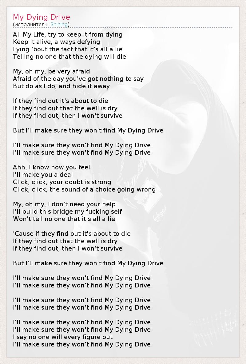 А как ты думаешь, о чем песня "My Dying Drive" ?