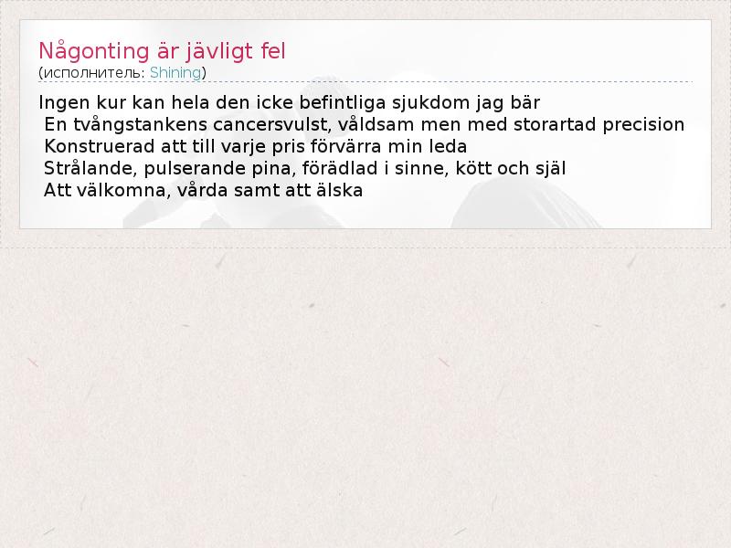 ГлавнаяИсполнителиShiningNågonting är jävligt fel