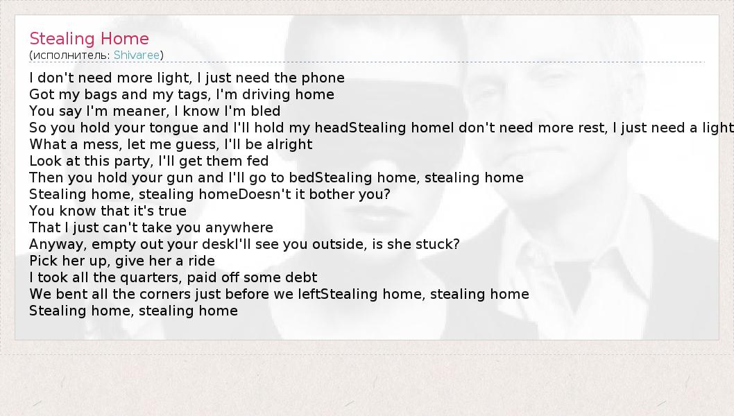 А как ты думаешь, о чем песня "Stealing Home" ?