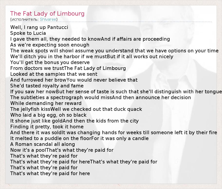 А как ты думаешь, о чем песня "The Fat Lady of Limbourg" ?