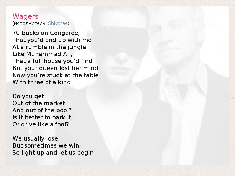 А как ты думаешь, о чем песня "Wagers" ?