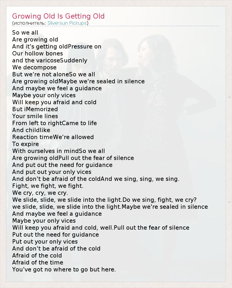 А как ты думаешь, о чем песня "Growing Old Is Getting Old" ?