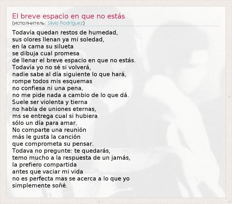 ГлавнаяИсполнителиSilvio RodríguezEl breve espacio en que no estás