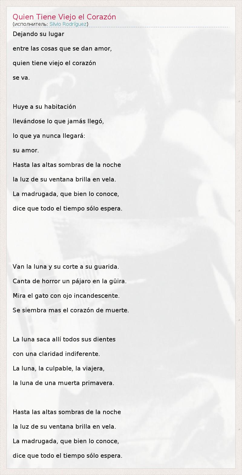 ГлавнаяИсполнителиSilvio RodríguezQuien Tiene Viejo el Corazón