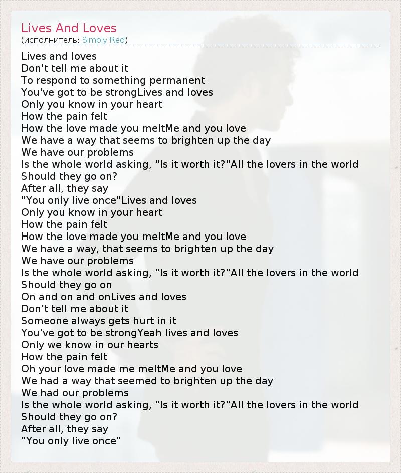 А как ты думаешь, о чем песня "Lives And Loves" ?