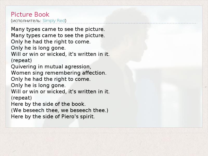 Это интересно:Английская группа Simply Red была создана в 1984 году. В её состав вошли вокалист и автор песен Мик "Ред" ("Рыжий") Хакнелл (р. 8 июня 1960, Манчестер, Англия), клавишник Фриц Макинтайр (2 сентября 1956, Бирмингем, Англия), басист Шон Увард, гитарист Силван Ричардсон, а также три бывших члена команды The Durutti Column – басист Тони Бауэрс (р. 31 октября 1952), ударник Крис... продолжение