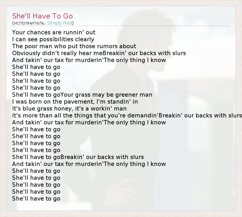 А как ты думаешь, о чем песня "She'll Have To Go" ?