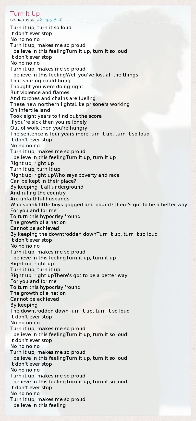 А как ты думаешь, о чем песня "Turn It Up" ?