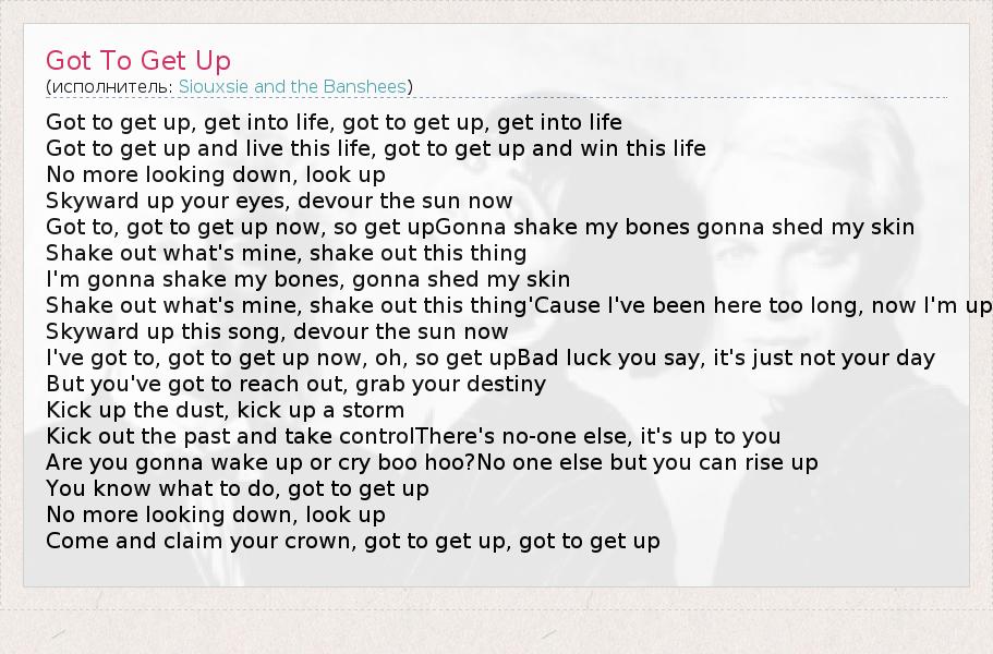 А как ты думаешь, о чем песня "Got To Get Up" ?
