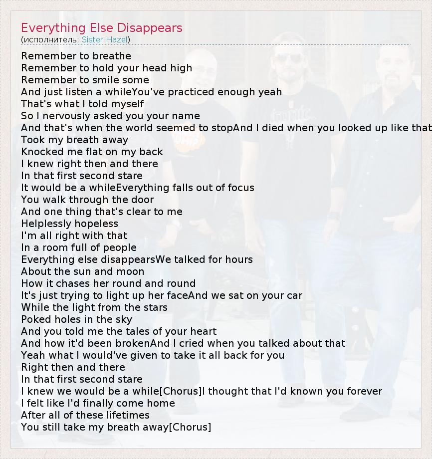 А как ты думаешь, о чем песня "Everything Else Disappears" ?