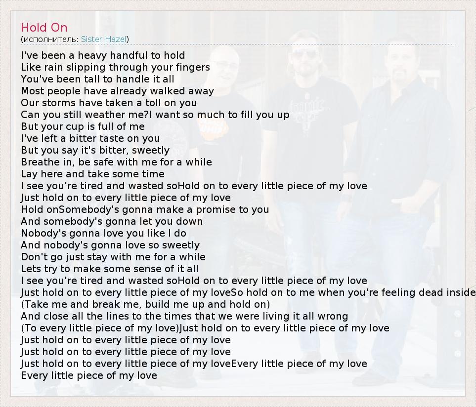 Just hold on to every little piece of my loveEvery little piece of my love