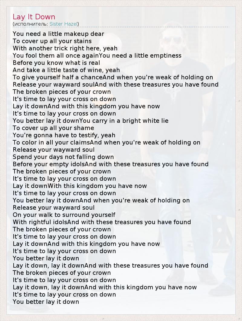 А как ты думаешь, о чем песня "Lay It Down" ?