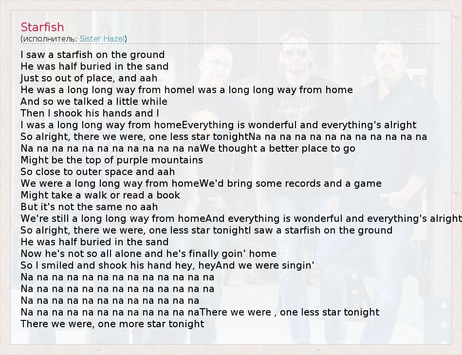 So alright, there we were, one less star tonightI saw a starfish on the ground