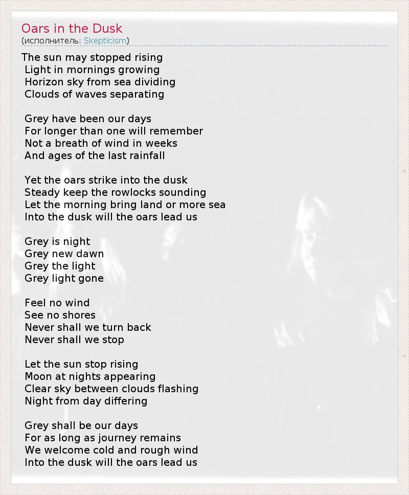 А как ты думаешь, о чем песня "Oars in the Dusk" ?