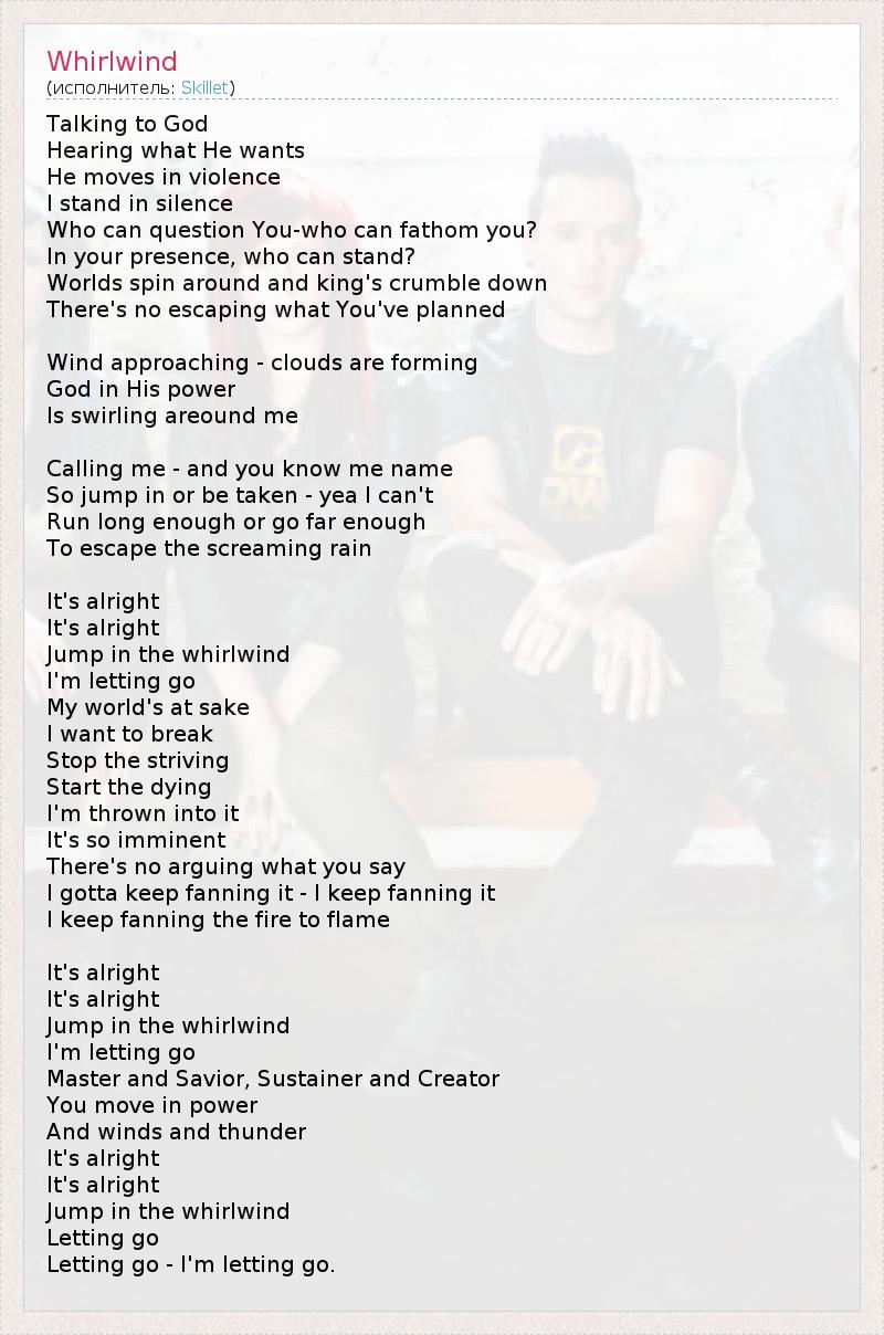 А как ты думаешь, о чем песня "Whirlwind" ?