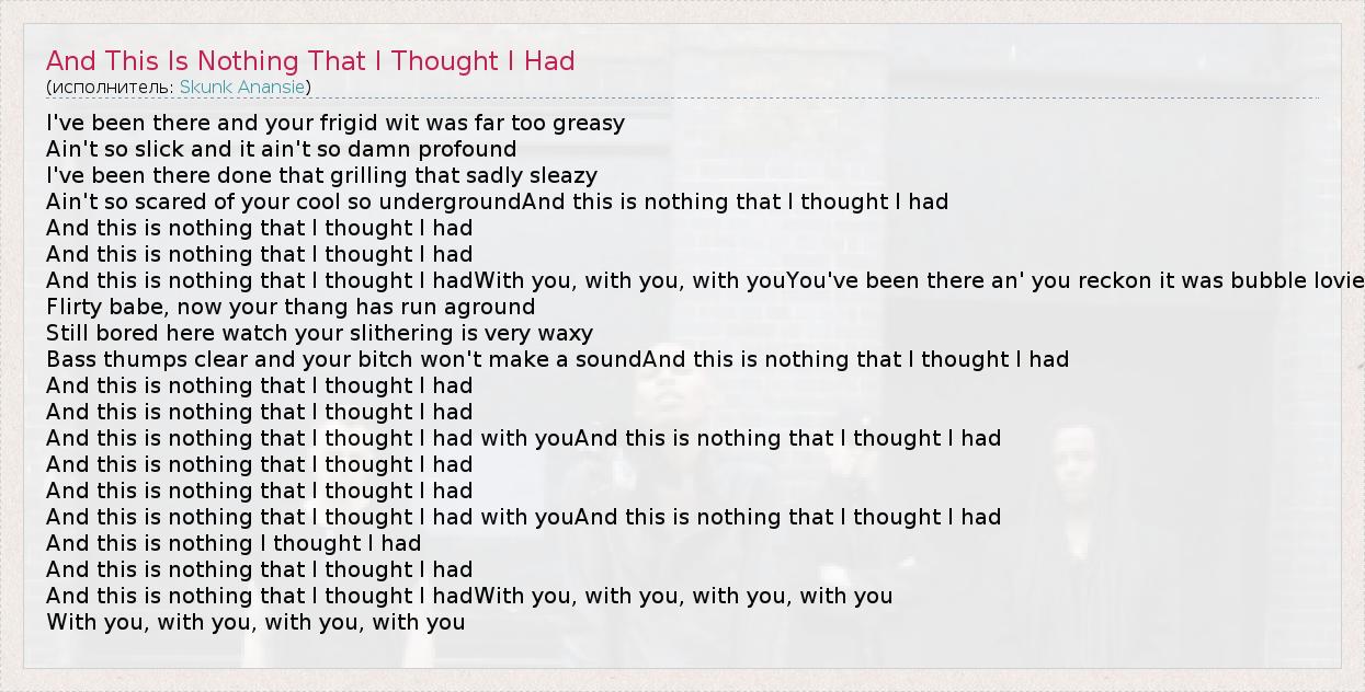 ГлавнаяИсполнителиSkunk AnansieAnd This Is Nothing That I Thought I Had