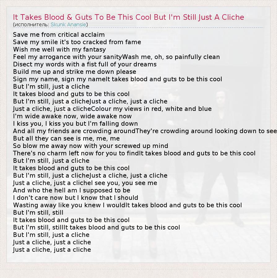 It Takes Blood & Guts To Be This Cool But I'm Still Just A Cliche