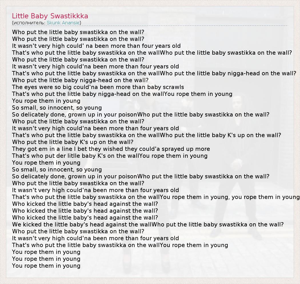 А как ты думаешь, о чем песня "Little Baby Swastikkka" ?