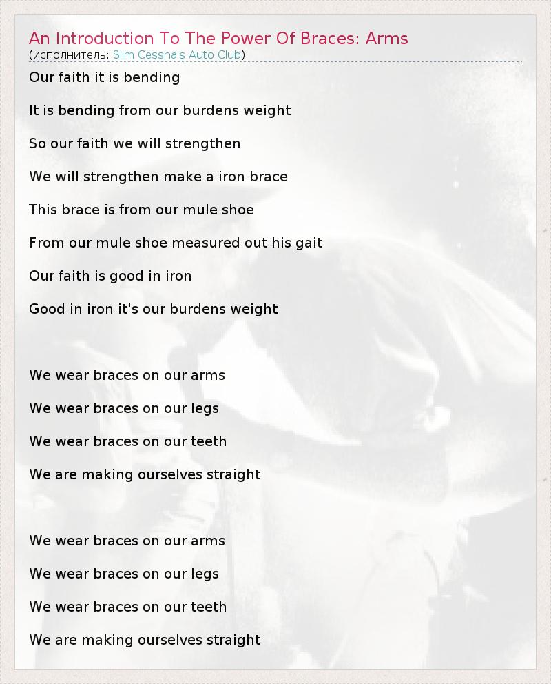 А как ты думаешь, о чем песня "An Introduction To The Power Of Braces: Arms" ?