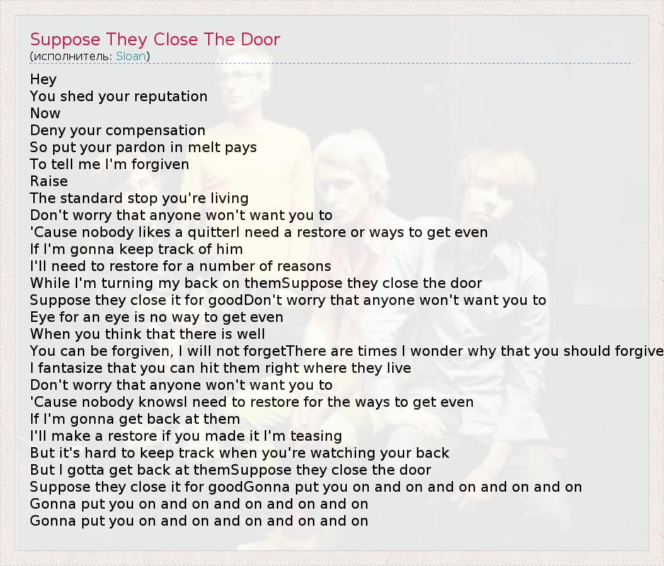 ГлавнаяИсполнителиSloanSuppose They Close The Door