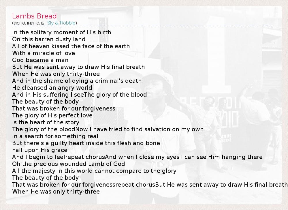 А как ты думаешь, о чем песня "Lambs Bread" ?