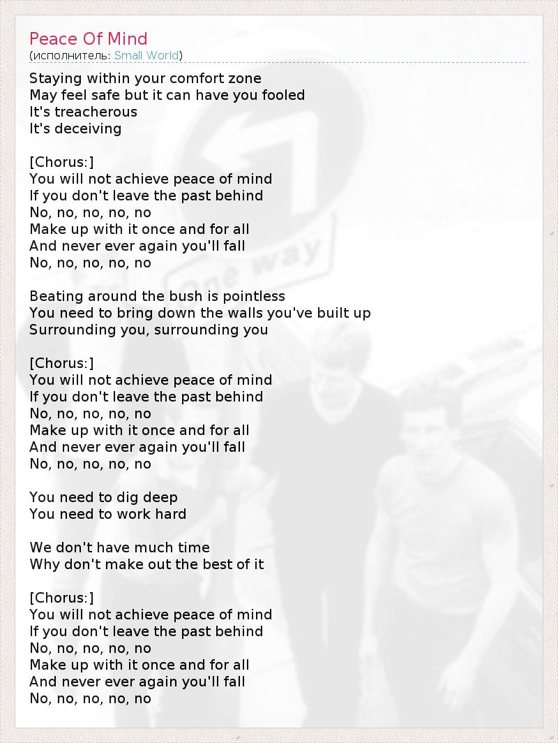 А как ты думаешь, о чем песня "Peace Of Mind" ?