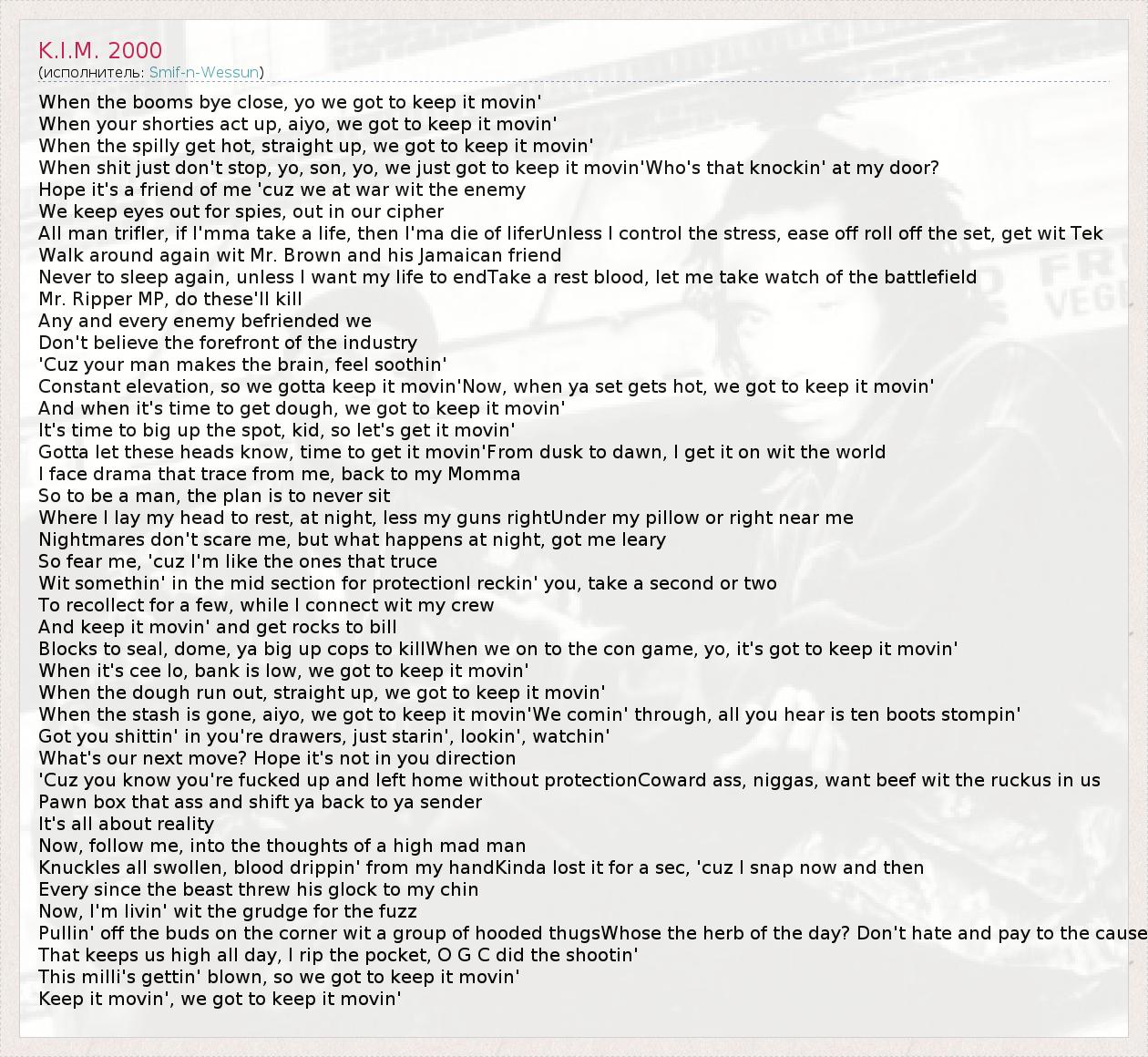 А как ты думаешь, о чем песня "K.I.M. 2000" ?