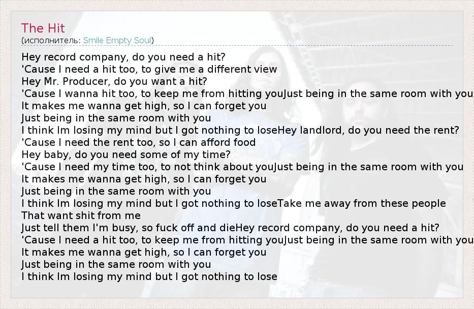 А как ты думаешь, о чем песня "The Hit" ?